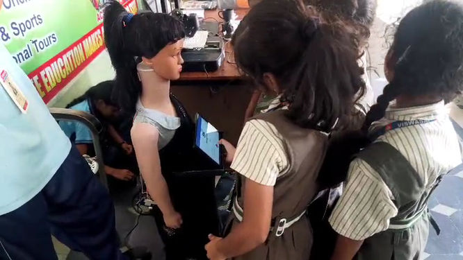 Students at Viswasai DR SRK School enjoyed an interactive demonstration of learning robots, engaging enthusiastically with the technology during the special event. The educational robots captivated the students, who happily participated in various activities designed to showcase the robots' capabilities and potential applications in learning environments.